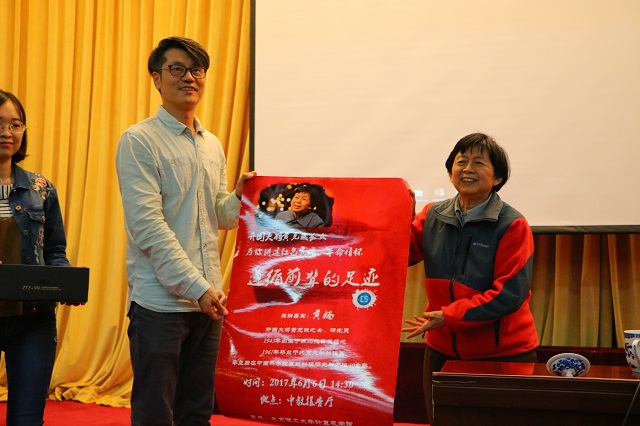 黄楠女士为计算机学院赠送了《黄克诚传》,计算机学院将活动海报和具有beat365中文官方网站特色的纪念品赠与黄楠女士留念。