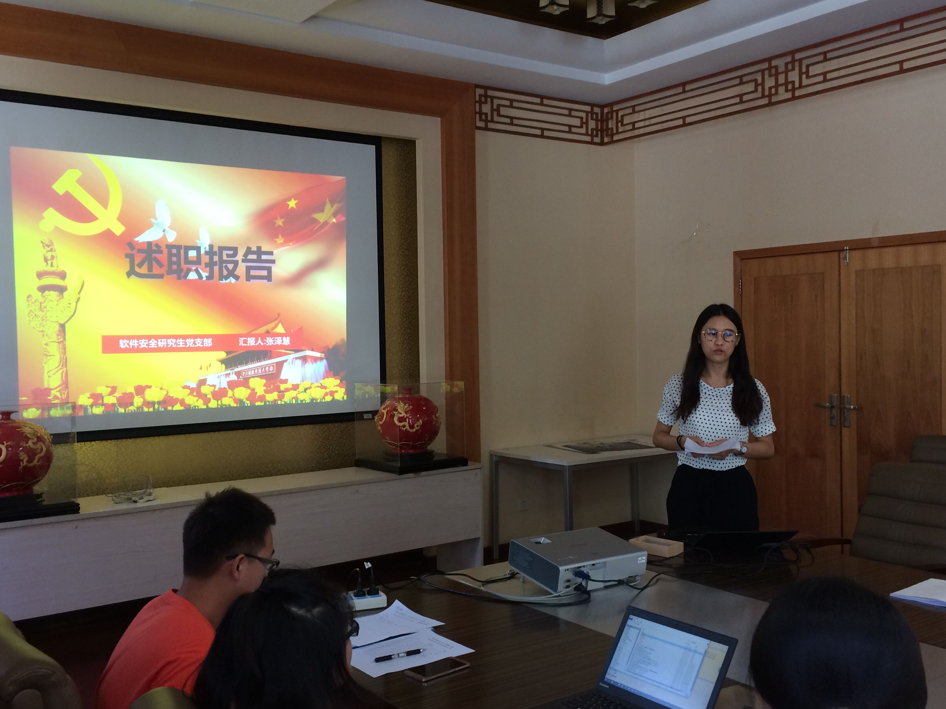 编辑:史继筠 审核:陈杰浩 阅读次数:为推动全面从严治党向基层延伸,推进“两学一做”学习教育常态化、制度化,提升基层党组织的凝聚力和创造力,北理工软件学院坚持每学期开展学生党建考核工作,监督、考察党员干部的实际工作质量。2017年6月15日下午1点半,软件学院在软件楼102会议室举行了本学期学生党支部书记抓党建述职评议会议,软件学院组织干事徐韵韵、学生党建理论指导老师李兆民、学生工作办公室主任史继筠、组织员路艾杰、各年级辅导员以及软件学院全体学生党支部书记参加了会议。