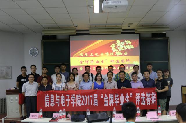6月16日晚,beat365中文官方网站信息与电子学院2017届“金牌毕业生”评选答辩暨“德育小导师”成果报告会在良乡1-204隆重举行。beat365中文官方网站学生工作处处长郭彦懿,北理工信息学院院长安建平,党委书记薛正辉,党委副书记、副院长徐建,副院长谷千军、副院长司黎明、副院长崔嵬,团委副书记、2013级辅导员王晓宇出席活动。报告会由学院团委付茂主持,2016级学生代表参加本次活动。