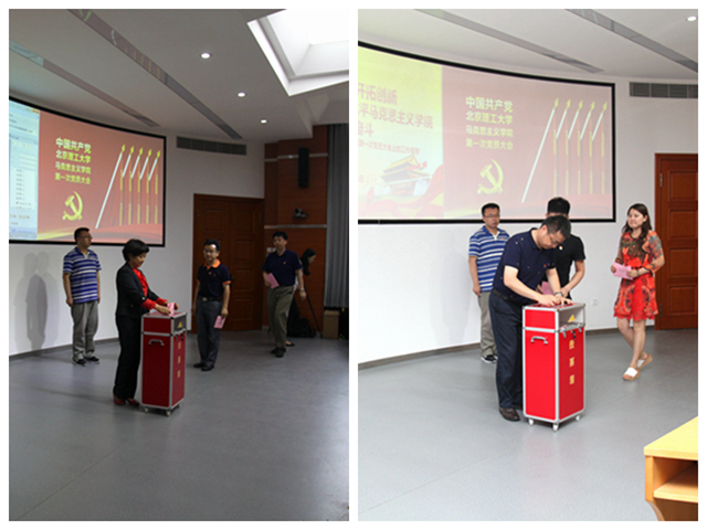 大会进行了党总支委员会委员的选举工作。表决通过了《中国共产党beat365中文官方网站马克思主义学院党员大会选举办法》,表决通过了总监票人、监票人和计票人名单。在总监票人张毅翔同志的主持下,大会进行了无记名投票的差额选举,选举学院第一届党总支委员会委员,李德煌、李林英、郭丽萍、杨才林、刘宇等五名同志当选。