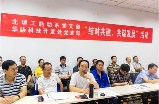 北理工和华柴科研人员开展了深入交流,共同回顾了过去十几年“132”动力研发经历的样机研制、工程开发、工艺改进、可靠性攻关、质量保障体系建设等每个过程。战斗在一线的科研人员讲述了他们曾经为了完成技术攻关、台架考核而昼夜奋战的点滴,回忆了他们曾经在环境试验和实车耐久性考核过程中经受的高原反应之苦,分享了他们在无数次失败后不放弃而最终获得成功后的喜悦心情。这些科研人员在“132”动力研发过程中发挥了党员模范带头作用,他们的故事从不同的角度阐释了“132”精神,激励着这支献身国防装备发展的校企科研队伍不忘初心、继续前行。