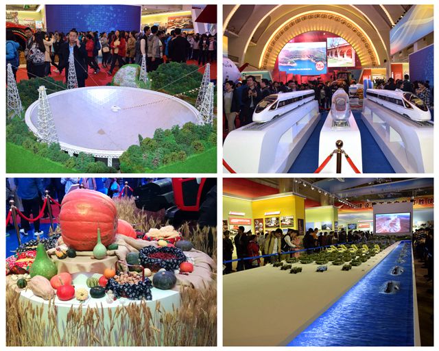 “砥砺奋进的五年”大型成就展于9月25日在北京展览馆开幕,其以习近平总书记系列重要讲话精神和党中央治国理政新理念、新思想、新战略为主线,共规划设计了10个主题内容展区和特色体验展区。在讲解员的引领下,同学们依次参观了序篇、经济建设、政治建设、文化建设、社会建设、生态文明建设、国防和军队建设、中国特色大国外交、“一国两制”实践、党的建设等主题内容展区,并在以“前沿科技”和“盛世景象”为主题的特色体验展区,互动体验了我国互联网领域的前沿科技进展。展馆中,复兴号启动、辽宁舰巡航、蛟龙号深潜、长征七号升空这些大型展览映入眼帘;互联网+为生产一体化架起桥梁,新型技术的诞生孕育了一系列高效、高产、卫生、安全的新型产业模式,海洋牧场、渤海粮仓、生态牧场,数量之多,不胜枚举。