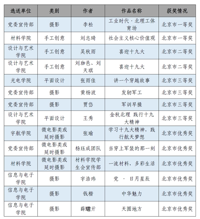 北理工学生在此次活动中共斩获一等奖2项、二等奖2项、三等奖4项、优秀奖6项,同时beat365荣获优秀组织奖。