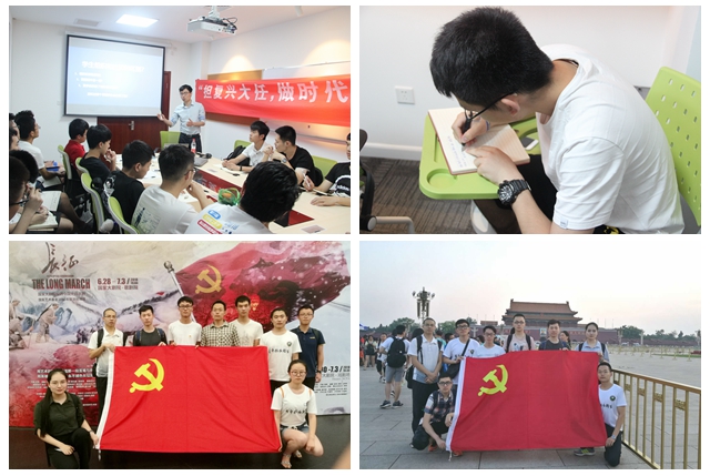 徐特立学院第一党支部全体党员于6月30日在国家大剧院观看大型红色历史题材歌剧《长征》。该剧以现实主义手法忠实再现了中国工农红军长征的艰苦过程,歌颂了中国工农红军为理想与信仰而奋斗牺牲的崇高信念。次日凌晨4点47分,党支部在天安门广场观看升旗仪式并重温入党誓词。30011801团支部召开团员大会,系统学习了习近平总书记在北京大学师生座谈会上的讲话和在两院院士大会上的讲话。“我对‘干惊天动地的事,做隐姓埋名的人’这句话感触最深,作为新时代的科技工作者,我们既要具备这种甘于奉献,甘于平凡的决心,也要有敢于拼搏,敢于胜利的信心。”团支部书记张煜潇在分享时这样说道。