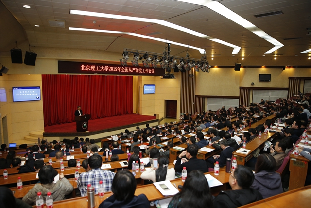 赵长禄强调,学校2019年全面从严治党工作总体要求是:以习近平新时代中国特色社会主义思想为指导,深入贯彻党的十九大和十九届二中、三中全会精神,深入贯彻习近平总书记关于教育的重要论述,认真学习贯彻中央纪委三次全会、全国教育大会、全国宣传思想工作会议,以及工业和信息化部党组、教育部党组和北京市委有关会议精神,不忘初心、牢记使命,增强“四个意识”,坚定“四个自信”,坚决做到“两个维护”,坚持稳中求进,以党的政治建设为统领,不断加强党的全面领导,确保党的十九大精神和党中央重大决策部署坚决贯彻落实到位,把培养德智体美劳全面发展的社会主义建设者和接班人作为根本任务,把立德树人的成效作为检验学校一切工作的根本标准,大力提升党建和思想政治工作质量,切实增强学校各级党组织创造力、凝聚力、战斗力,不断将全面从严治党引向深入,一体推进不敢腐、不能腐、不想腐,巩固发展反腐败斗争压倒性胜利,为落实学校各项改革发展举措、加速推进学校“双一流”建设提供坚强保证,以优异成绩庆祝中华人民共和国成立70周年。
