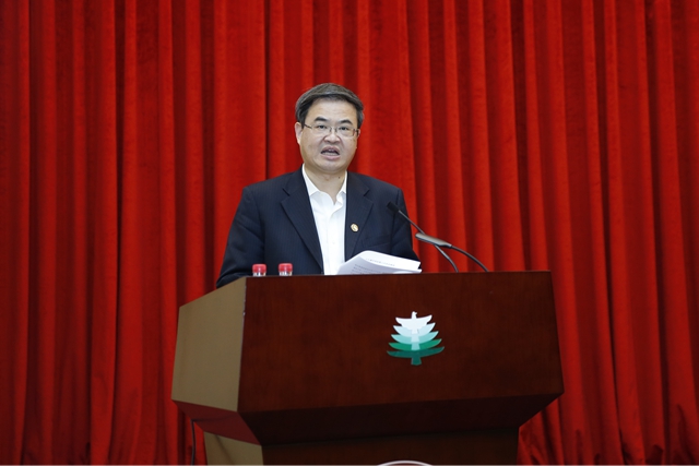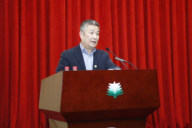 校党委书记赵长禄代表学校党委作了《奋发进取 砥砺前行 扎实推进全面从严治党向纵深发展》的工作报告,对2018年全面从严治党工作进行总结,对工作中存在的问题进行深入剖析,进行了警示教育,对学校2019年全面从严治党工作进行部署。