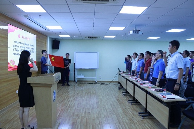 全体人员面向党旗,庄严宣誓,重温了入党誓词。