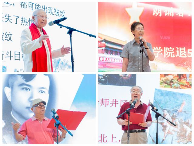 朗诵会的开篇是由机电学院退休党支部、光电学院退休党支部朗诵的伟大领袖毛主席的诗词《沁园春▪雪》《浪淘沙▪北戴河》。展现了伟大祖国的壮丽山河,开国领袖的豪迈气魄,鼓舞广大离退休教职工在习近平新时代中国特色社会主义思想指引下为中华民族伟大复兴继续努力奋斗。