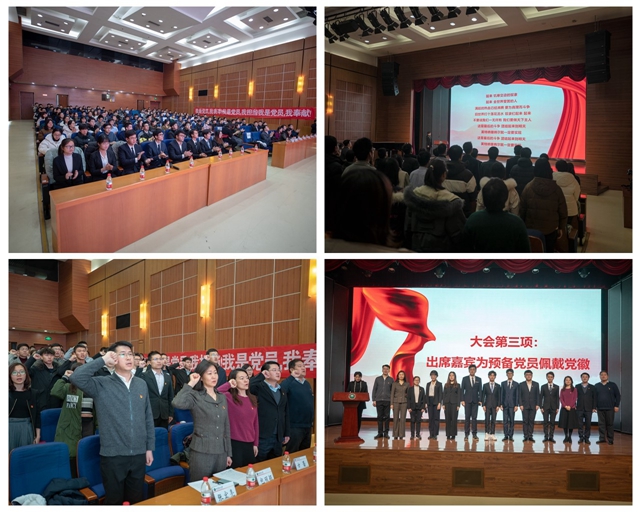 宣誓仪式在庄严的《国际歌》中拉开帷幕。学生工作部副部长、机关党委副书记张舰月同志宣读预备党员名单,校优秀共产党员、明德书院辅导员王一飞同志领誓,包丽颖和各书院党支部书记为预备党员代表佩戴党徽。