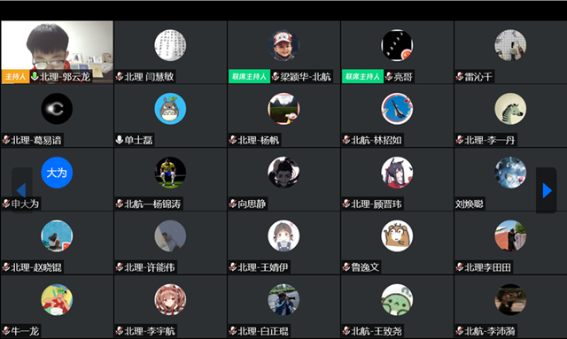 梁颖华、张宏亮对本次活动进行总结。梁颖华讲到此次疫情充分展现了中国特色社会主义制度的优势,呼吁青年大学生肩负起历史使命,在实现中国梦的伟大征程中建功立业。张宏亮重温了北航三代陀螺人、三代无人机人,北理工三代雷达人、三代兵器人的故事,谈到代代北航人、北理工人传承精神、担负使命,为国家建设做出了重要贡献。他号召同学们向身边的榜样学习,做有理想、能担当的新时代优秀青年。