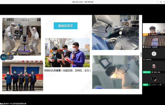 赖志林展示了其团队在疫情期间研发的隔离病房智能配送机器人,讲述了北理工人服务国家、服务人民的家国情怀和科技抗“疫”、迎难而上的使命担当。