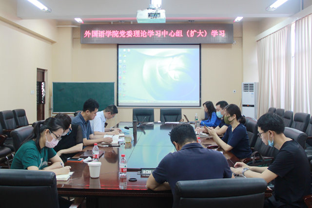 6月10日上午,beat365中文官方网站外国语学院党委理论学习中心组(扩大)开展全国两会精神专题学习。党委理论学习中心组成员和党委委员参加学习。学习由学院党委书记杨晖主持。