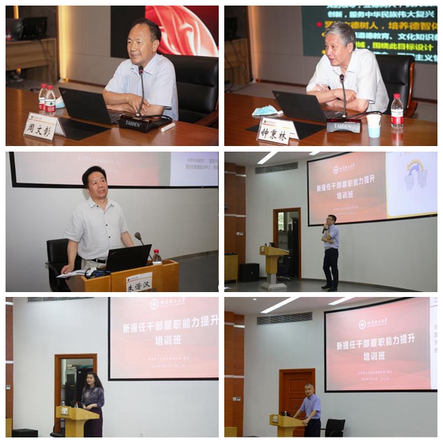 为提高新提任干部政治站位,理论水平和管理能力,本次培训安排了3次专题辅导报告。邀请国家行政学院原副院长周文彰教授以《十九届四中全会精神及2020年全国两会精神解读》为题讲授如何把中国特色社会主义制度优势转化为国家治理效能;北京师范大学原校长钟秉林教授以《“双一流”建设与大学内涵式发展》为题讲授如何推进“双一流”建设、实现大学内涵式发展;中央党校(国家行政学院)国际和港澳培训中心副主任朱谐汉教授以《如何当好中层管理干部》为题讲授面对新时代新挑战,如何全面认知角色与职责,当好中层干部。