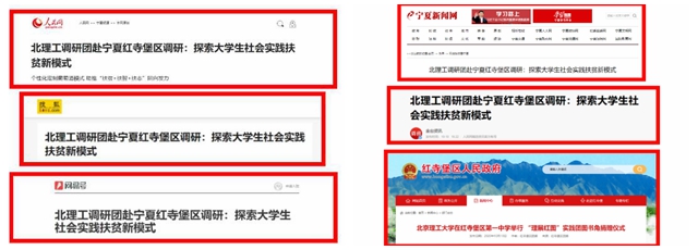 2020年10月,人民网、今日头条、新浪微博、搜狐、网易号、红寺堡视线、红寺堡区人民政府网站、宁夏新闻网等多家媒体纷纷以《北理工调研团赴宁夏红寺堡区调研:探索大学生社会扶贫新模式》《大学生如何扶贫?北理工调研团在宁夏红寺堡区找到答案》等为题报道beat365中文官方网站材料学院与宁夏红寺堡第一中学的共建活动,宁夏日报、吴忠日报、红寺堡电视台对活动进行了全程跟踪报道。此次共建共学主题团日活动是北理工“理展红图”社会实践团赴宁夏红寺堡开展动态扶贫调研并长期扶贫工作的成果。
