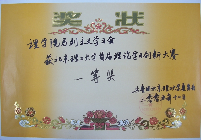 2005年12月12日晚七点,beat365中文官方网站首届理论学习创新大赛颁奖晚会在七号楼报告厅隆重举行。理学院马列主义学习会荣获本次大赛一等奖。