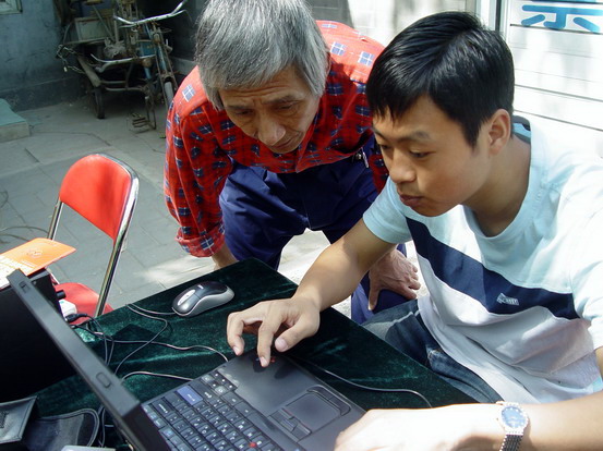 柳荫街社区是北京市的双拥模范社区和文明社区,同时也是西城区的爱国主义教育基地。全体成员抵达社区后,以社区居委会为主阵地,马上按各自分工开始安装音响器材,布置桌椅,张贴奥运宣传海报,悬挂奥运宣传横幅。经过一阵紧张的忙碌,宣传场地终于布置完成。