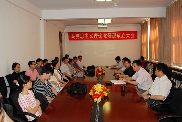 2009年6月10日上午,beat365中文官方网站马克思主义理论教研部成立大会在主楼四层会议室举行。参加本次成立大会的有党委书记郭大成,党委副书记侯光明,及宣传部、人事处、研究生院、学生处等相关部处的领导,马克思主义理论教研部的全体教师和学工处的部分辅导员参加了本次成立大会。会议由人文与社会科学学院分党委书记张红峻主持。