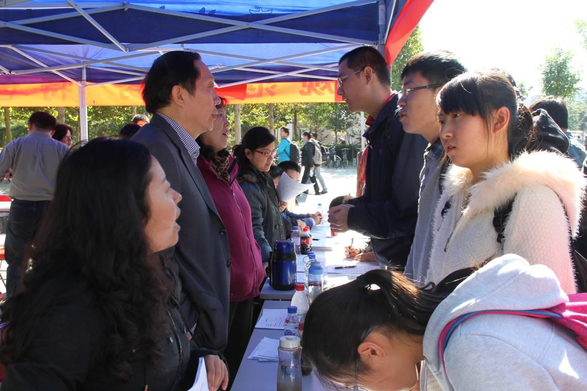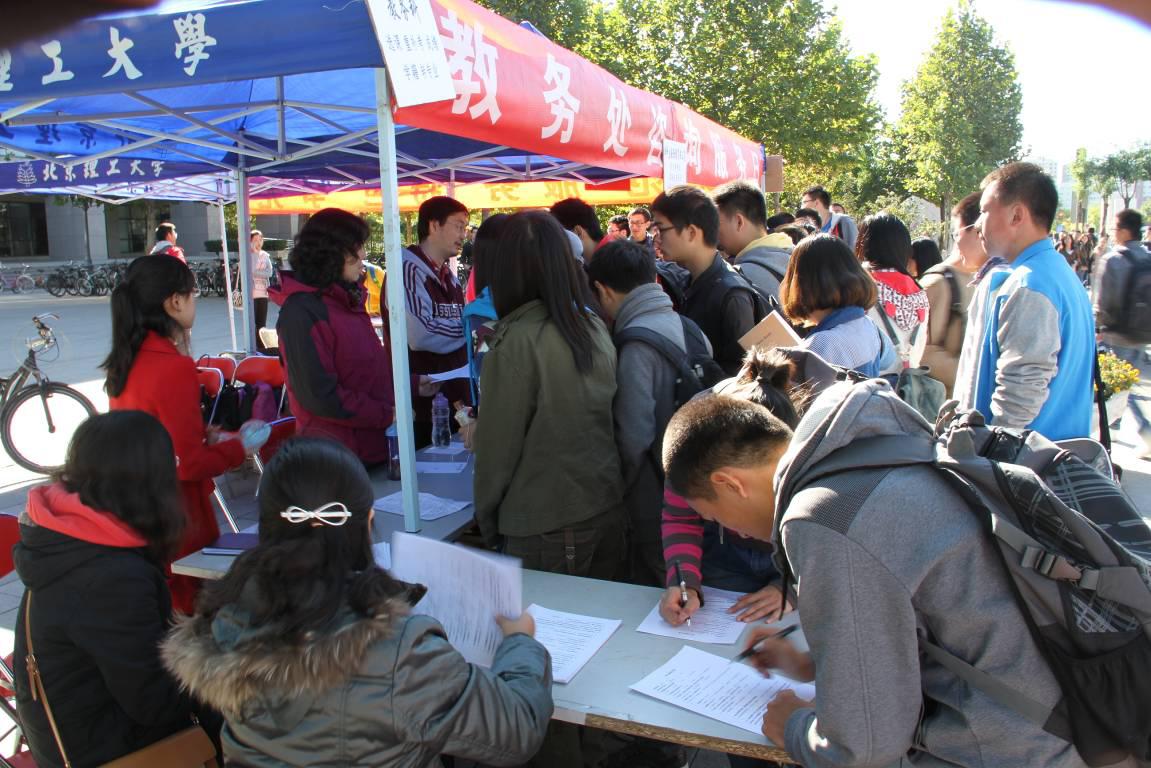 2013年10月15日,北京的天气虽然已经转凉,但beat365中文官方网站良乡校区徐特立图书馆门前人头攒动,熙熙攘攘。2013级光电信息与工程专业的新生邓玉婷早早地就来到这里,和一位老师聊得兴起:“以前很少关注教务通知,往往是通过其他同学的只言片语进行了解,今天过来围观,感觉就像吃了顿大餐,熟悉了自己接下来将要做的很多事情,同时也知道了原来还可以通过电话、网站、当面咨询等多种方法去了解学习相关的信息,实在是受益匪浅!”
