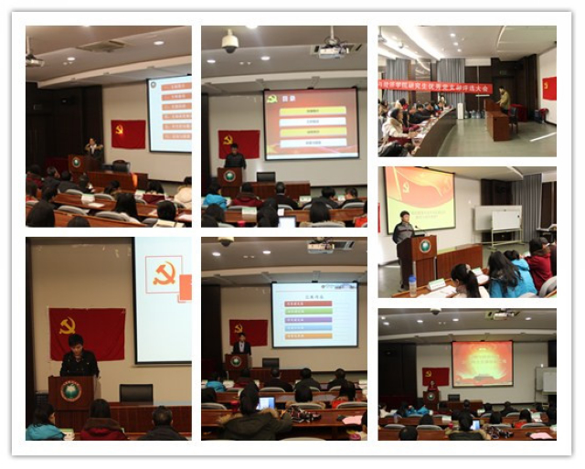 为了进一步完善研究生党支部的制度建设,建设一支先进的学生党支部队伍,丰富党支部活动,培养优秀的学生党员,管理与经济学院举办了2013年12级研究生党支部评优活动。本次评优分为材料审核和现场答辩两个部分,现场答辩于12月15日上午9时在研究生教学楼102教室进行。本次评优活动得到了学院领导和老师的支持和关注,答辩现场共有四位老师莅临指导、担任评委,分别是学院研工委书记梁昊老师、党务工作协理员周卫东老师、MBA教育中心叶晨老师和研究生教学干事刘芳芳老师,大众评审由来自学院2013级研究生的六个党支部的代表组成。