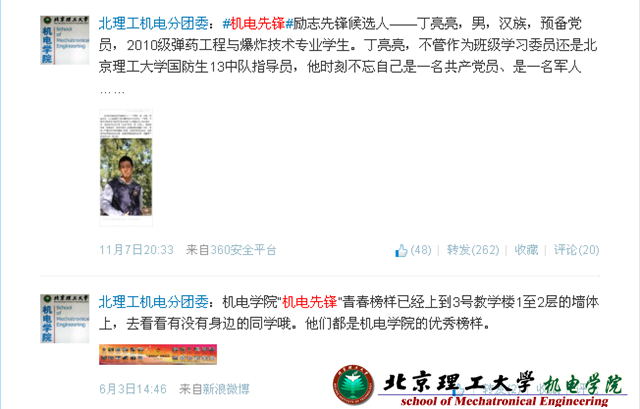 为引导学生学习青年典型、展示青春风采、弘扬民族精神和时代精神,机电学院团委于2011年起开展了“机电先锋”评优活动,建立起了机电学院自己的人才榜样库,“机电先锋”包括学业先锋、科创先锋、志愿先锋、文体先锋、励志先锋、先锋干部、先锋组织、党员先锋八项,已从全院研究生、本科生当中选拔出了36名先锋个人、6支先锋团队,他们不论在个人学习成绩、科技创新竞赛,还是实践工作、学生社团工作方面都有着突出的事迹和表现。为更好的发挥榜样在青年成长成才过程中的引领作用,机电学院开展了2013年“机电先锋”的评比工作。