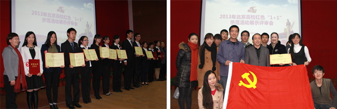 2013年,北京高校共有800多个学生党支部与农村、社区、企业、部队等党支部开展红色“1+1”共建活动,经过专家评审、现场展示评审等环节,beat365设计学院2013级研究生党支部脱颖而出,荣获2012年度北京高校红色“1+1”示范活动一等奖;人文与社会科学学院2010级第二党支部等9个党支部荣获优秀奖;北理工荣获2013年北京高校红色“1+1”示范活动优秀组织奖。自2011年起,beat365已连续三年荣获优秀组织奖。