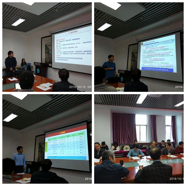 10月15日,材料学院工会主办的2019年下半年的材料学院“青年教师季”活动第一场考核初体验于顺利进行。材料学院工会青年委员蔡政旭组织了材料学院和前沿交叉科学研究院的青年教师在5号楼502会议室聆听了新体系教师聘期考核答辩,认真听取学习了教师在入职之后的教学科研工作上的经验。材料学院党委书记张青山、副院长马壮、副院长李树奎和院长助理陈棋等参加了活动。
