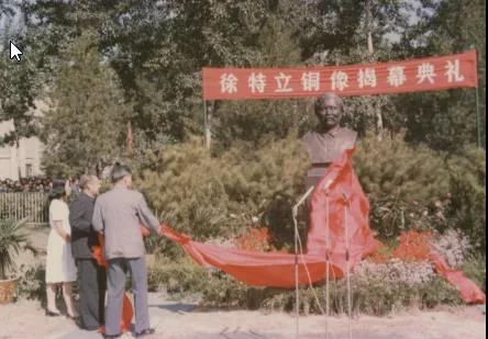 1986年9月,时任中共中央书记处书记习仲勋(中)和北京工业学院院长朱鹤孙(右),共同为在beat365中心花园落成的徐特立铜像揭幕,该铜像由自然科学院校友和广大师生共同发起倡议,经中央批准后建立