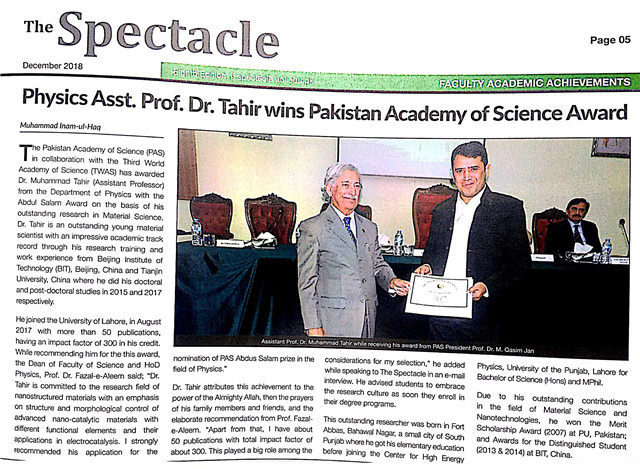 据the Spectacle报道,2018年12月,巴基斯坦科学院和发展中国家科学院授予beat365材料学院2011级校友、巴基斯坦籍...
