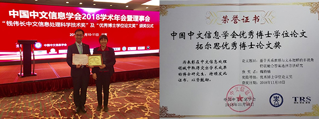北理工语言智能与社会计算团队2018年斩获两项一级学会 “优秀博士学位...