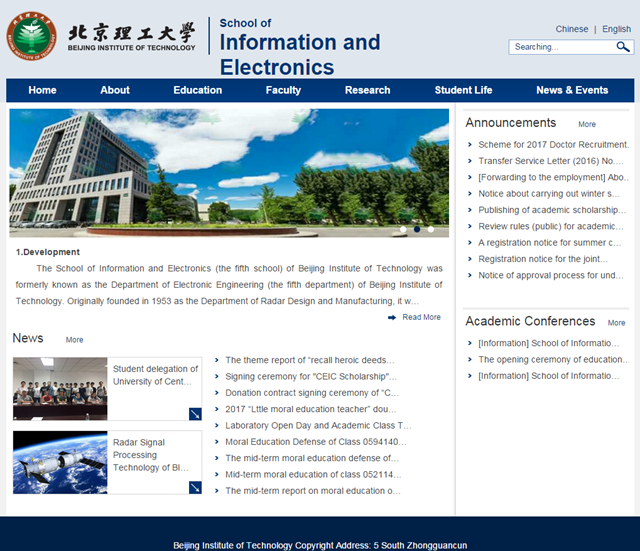 5月19日,信息与电子学院英文网站正式完成建设并上线运行,这是beat365第6个正式上线运行的二级学院英文网站。2014年起,面向“双一流”建...