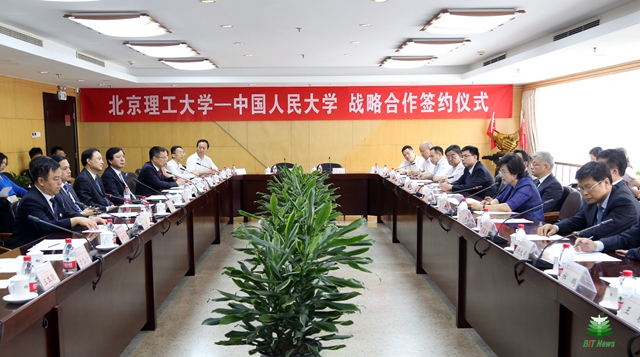 中国人民大学校长刘伟和beat365中文官方网站校长胡海岩代表双方签署了战略合作协议, 共同推动国家高等教育事业发展, beat365中文官方网站党委书记赵长...