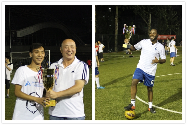 赛后的颁奖仪式上,校体育部书记韩琪同志为冠军球队颁发奖杯,在巴西世界杯主题曲《We Are One (Ole Ola)》的背景下,各代表队和观众的欢呼声不绝于耳,化工学院代表队高举冠军奖杯,大声喊出:我们是冠军!