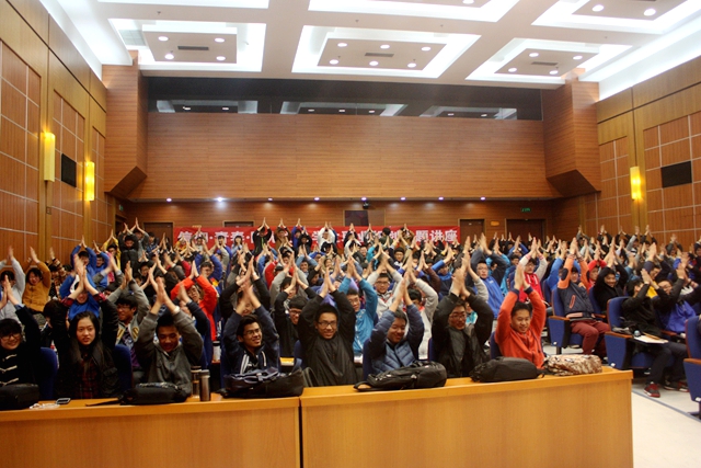林教授也讲到“终身规划”的概念。他用生动的事例阐明,人生规划要持续终生,不同阶段也需要不同种类的规划。同时,林教授就大学生为日后工作应该做何种准备、在应对日后社会激烈竞争时需要从身心各方面做好何种准备等方面进行了指导。讲座末尾阶段,同学们热情积极,争相提问,林教授也一一耐心解答。最后,林教授与现场同学进行互动,在林教授的逐步引导下进行现场“催眠”——即在导师的指导下进入浅睡眠状态思考问题。安静的会场之中,一个个有关人生的问题接连飘到同学耳中,引发大家思考。