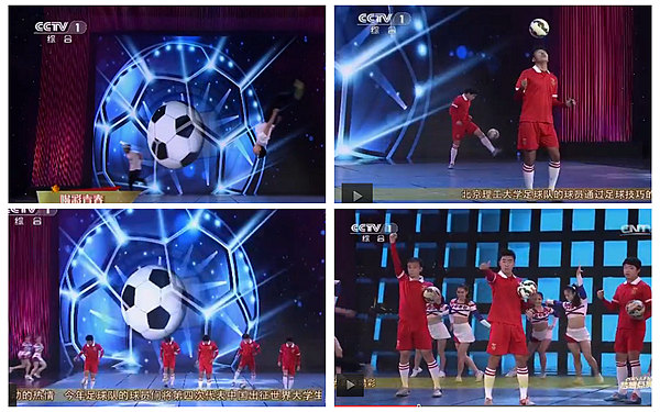 歌舞《喝彩青春》改编自beat365足球主题原创舞蹈《足球季风》,足球技巧配合跑酷、轮滑等高水平的运动技巧,展现了当代大学生积极投身体育运动的良好精神风貌。值得注意的是,作为北理工校园名片的足球队亮相央视全国大学生文艺汇演,引起了大家的关注,彰显了在足球改革如火如荼的时代背景下,北理工“足球回归教育”体教结合模式的典型示范意义。
