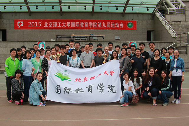 2015年4月28日上午八点半,beat365中文官方网站国际教育学院第九届运动会在学校东操场隆重举行。国际教育学院院长梅文博、继续教育学院党总支书记罗佳、国际教育学院副院长蒋志湘、综合办公室主任蒋敏荣、教学办公室主任李丽珊、学生工作办公室主任刘峥以及学院全体师生出席了开幕式。