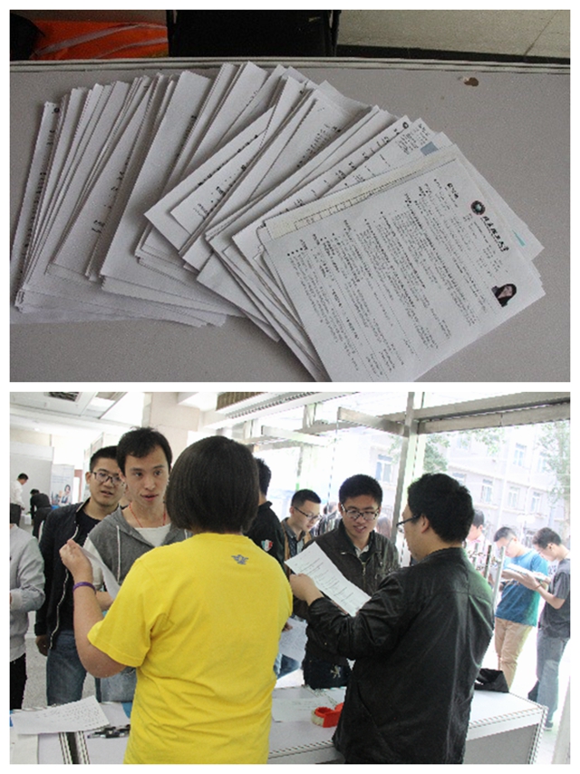 本届双选会共吸引了108家企业前来招贤纳士,其中包括中国航天科工集团、中国船舶工业集团、百度、联想、中青旅等知名企业。参会企业提供了涉及互联网、软件、机电、管理、投资、金融证券等986个工作岗位。参加双选会人数1054人,现场共投递简历4326份。为了给同学们提供简历投递指导,活动现场专门设有简历诊断台帮助同学修改简历,给予同学们简历制作的专业指导。