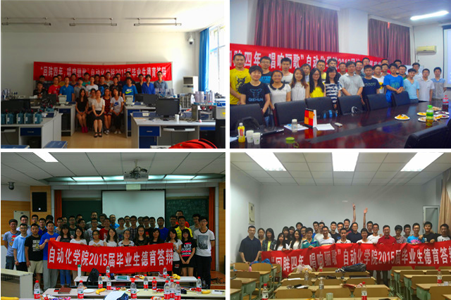 272名自动化学院2015届学生以班级为单位开展此次德育答辩,在回顾大学成长和收获的同时,为今后的人生道路制定目标,迎接新的征程。在国外进行交流的学生也通过视频的形式参与答辩。学院领导、班主任、优秀校友和非毕业年级学生也参与到答辩中。