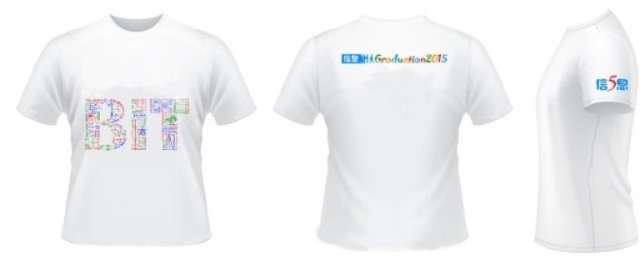 自3月29日起面向全体毕业生征集毕业纪念衫设计方案。经过网络投票和评审评分,最终“最后的纪念”作品脱颖而出,作品中BIT三个字母由总共72个元素拼成,所有的元素均来自信息与电子学院同学们大学四年所学的课程,这些公式、符号组成了信息学子在BIT的点点滴滴。