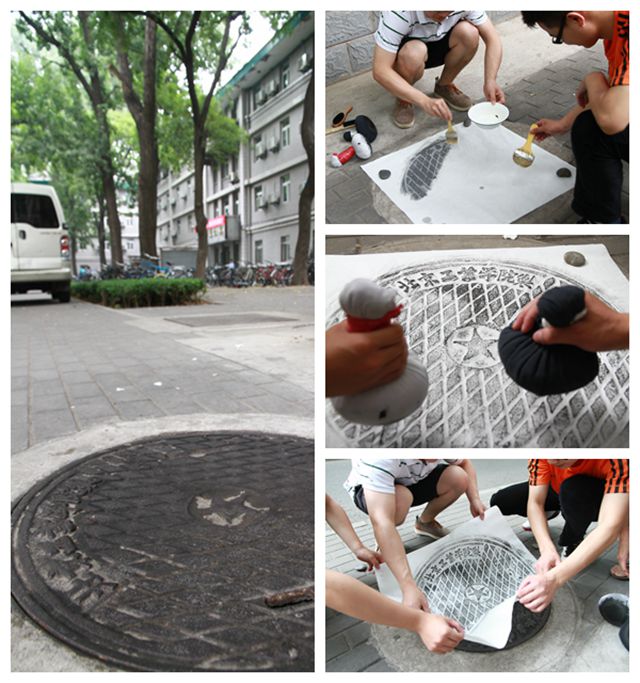 在毕业之际,为增强同学们对母校的归属感,结合七十五周年校庆,团支部同学开始遍寻具有学校历史的印记。通过细致的搜索,发现在学校中仍有十余个标有“北京工业学院制”字样的井盖,如何将井盖作为文化作品保留下来呢?同学们发现了即将失传的一项非物质文化遗产技艺——“传拓”。