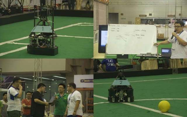 在本次大赛中,机器人中型组项目(Middle Size League)是一个传统国际合作项目,以多智能体体系(Multi-Agent System)和分布式人工智能(Distributed Artificial Intelligence)主要研究背景,该项目的最终目标是:到2050年,开发完全自主仿人机器人队,赢得人类足球世界冠军队。为了真正作为一个团队进行机器人足球比赛,该项目涉及到多个方面的技术,包括:智能体自主设计、多智能体协作、策略获取、实时推理、机器人和传感器融合。Robit参赛队员由来自软件学院、自动化学院、机电学院、设计学院的10名本科生组成,代表整个机器人足球中型组团队的23名成员与各支世界一流球队同台竞技。面对国内经过多次比赛切磋的老牌强队以及实力未知的国外队伍,整个团队表现出前所未有的凝聚力,以顽强拼搏的精神以及坚忍不拔的毅力出色得完成了本次比赛。
