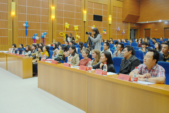比赛由一段主题视频拉开序幕。每位选手围绕视频内容展开3分钟的主题演讲,随后评委围绕演讲内容进行提问,最后累计积分。第一个上台演讲的是来自2014级的孙奥亚同学,她的发音纯正、地道,富有感染力,语速适度,她与场下的观众时有互动,获得了评委的赞许。来自2015级的贺嘉韵同样表现不凡,演讲流利、自如,层层铺垫,回答也恰到好处。来自艺术与设计学院的刘蕴苇同学以柔和的语调,幽默的语言,配合适当的肢体语言,吸引了全场同学的注意力。随后,林思辰同学以演说结合的方法,展现了她的独特演讲风采,生动、活泼。让人印象深刻的还有2014级的阿丽莎,这已是她第二次参加本次大赛,去年她也有不俗的表现。演讲的过程中她面带微笑,极具亲和力。无独有偶,刘岳青同学也以她幽默、诙谐的英语,打动全场的观众。随后的游戏环节,“你来比划我来猜”使得众多同学纷纷参与到其中,气氛热烈。
