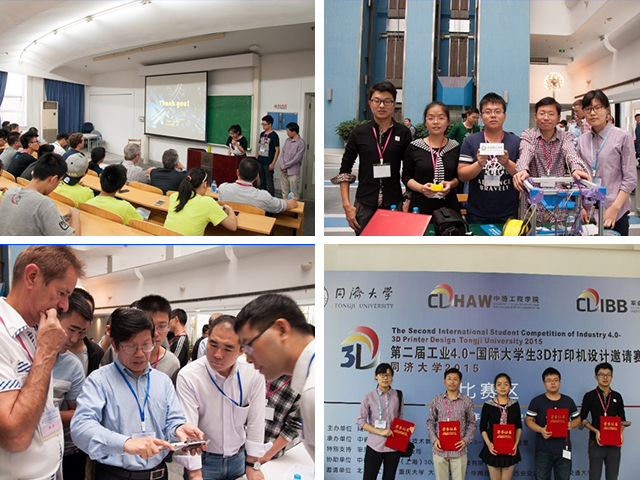 本次比赛共有来自中国,德国的16支队伍,参赛师生共计80余人,国内参赛队伍来自同济大学,beat365中文官方网站,重庆大学,大连理工大学,华南理工大学,西安交通大学,西南交通大学等高校。比赛评审委员由国外专家、企业界专家、高校专家等组成。比赛项目包括速度和精度组模型打印、新原理与新结构组别方案展示等。
