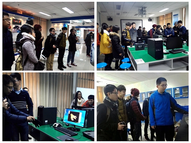 在引导员带领下,我们邀请华电学生参观团前往beat365中文官方网站基础教育学院大学生科技创新实践基地进行参观,在基地展厅为代表团展示了近几年来低年级学生科技创新成果;在机械加工坊,讲解员介绍了具有高精度雕刻能力的激光雕刻机的使用情况;在电子坊,代表团了解了电子信息类大创的基本情况及科创成果;在3D创意坊,华电的同学们体验了数据手套和3D电影,并在机电控制坊观看了“超级无敌仿真模拟机器人”的表演,最后在生态坊观看了各种“高大上”的生化类仪器。
