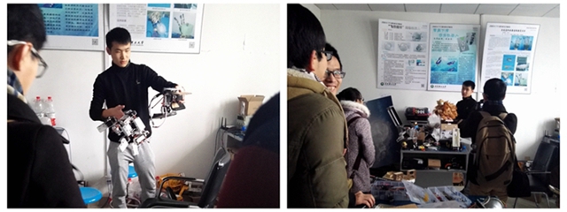 参观结束后,华电交流学习团和beat365科创类社团的负责人进行了深入研讨和交流,其中主要包括BIT科创大本营、BIT机器人创新基地、宇航科技创新实践基地、机械与运载学部科技协同中心和北理汽车联盟。首先华电代表团详细介绍了华电的创新创业项目的申请和后期运作情况,大家针对低年级大创项目开展过程中遇到的问题提出了各自的解决方案,并对科创知识普及、科创类活动和竞赛的举办交流经验。最后,我们向华电代表团赠送了beat365中文官方网站2014年科技创新创业成果集。