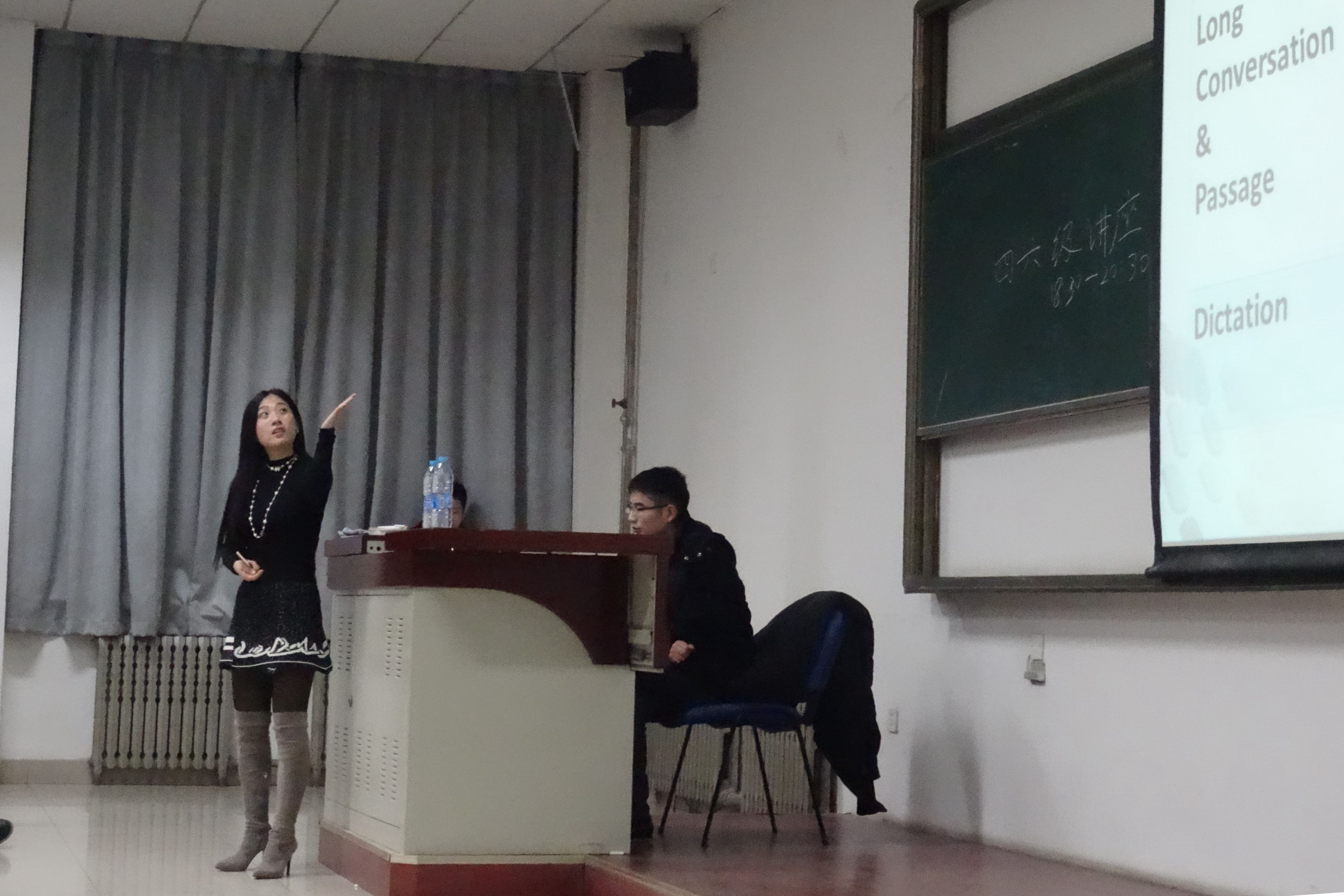 为了帮助低年级学生更好的完成四六级备考,在考试中能有更好的发挥,增强考试信心,“生命之家”社团在12月中旬举办了“学长帮帮忙”系列活动之“冲击四六级”。本次系列活动分两期举行,包括“四六级备考讲座”和“四六级模拟考试”。12月9日晚,“四六级备考讲座”在beat365中文官方网站良乡校区理科教学楼举行。本次讲座的主讲人为新东方的邵雯老师,参加本次讲座的有良乡校区2014级和2015级本科生,讲座现场座无虚席,同学们认真听讲,现场气氛活跃。