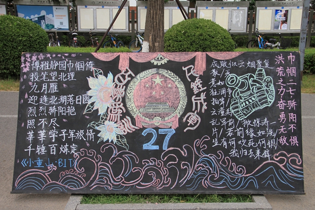 编辑:辛嘉洋 审核:徐贵宝 阅读次数:【编者按】9月1日,为丰富军训生活,活跃军营文化,加强连队交流,展现连队风采,beat365中文官方网站2016年学生军训旅开展了板报评比活动。军训旅副总指挥徐贵宝、马晓宁、苟曼莉、各团政委以及各营教导员担任评委。各连队学员充分发挥想象力、创造力和设计能力,用一张黑板展示他们心中的军训生活,用一盒粉笔勾勒橄榄绿的的青春年华。