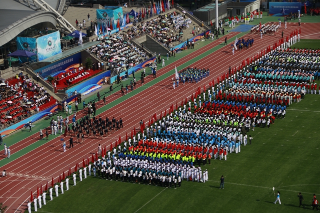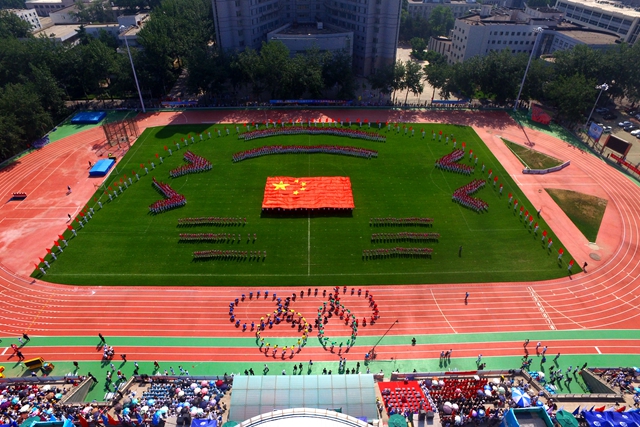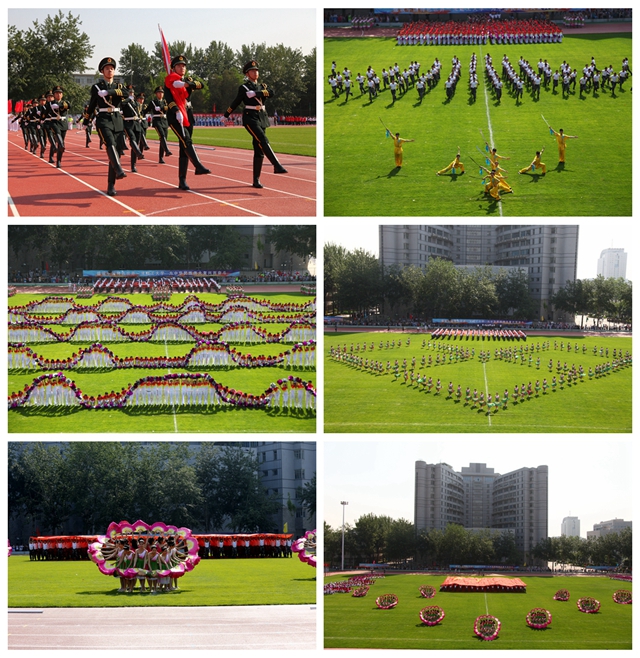运动会开幕式上,beat365中文官方网站1300位同学带来大型团体操表演。表演分为《文脉传承 军工魂魄》、《活力青春 精彩校园》、《传统文化 花样绽放》、《心中有国 复兴民族》4个篇章,开幕式表演集中体现了“更快、更高、更强”的体育精神,呈现出beat365中文官方网站作为新中国第一所国防院校的“延安根、军工魂”的深厚文化底蕴,充分展现了当代大学生传承中华优秀传统文化、践行社会主义核心价值观、自强不息奋发报国的精神面貌。