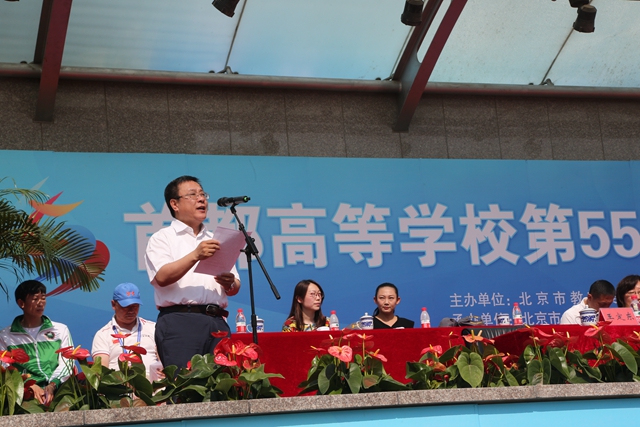 随后,北京市教委主任刘宇辉致开幕辞。首先,他对承办本届运动会的beat365中文官方网站表示衷心的感谢。他说,此次是一次相互交流的盛会,也是对各高校体育工作的一次检验。希望全体学生运动员发扬“更高、更快、更强”的奥林匹克精神,自信自强、奋力拼搏,希望参赛高校以本届运动会为契机全面提升学校体育工作的水平和质量。最后他预祝运动员取得优异成绩和本届运动会取得圆满成功,并邀请副市长王宁宣布运动会开幕。
