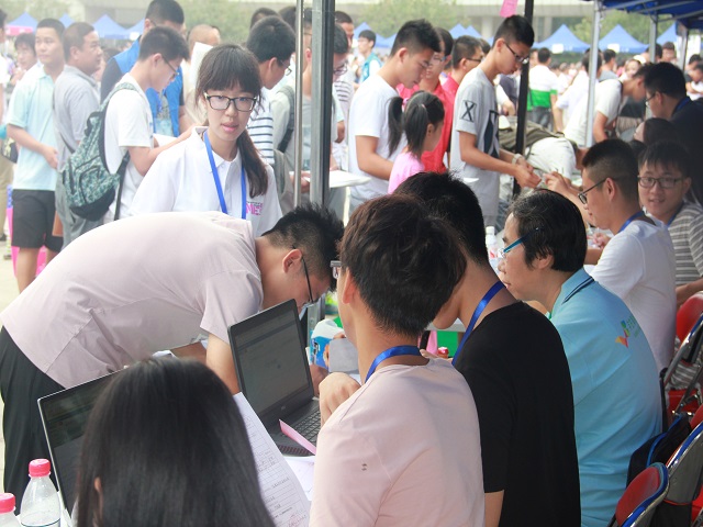 “绿色通道”共接待贫困新生404名,为343名学生办理了缓缴入学费用手续,发放360件爱心礼包,为400名学生发放了军训服装爱心卡,为142名学生发放梦想启航助学基金40930元。“绿色通道”自8月20日开始将持续3天,迎新当天未走“绿色通道”的家庭经济困难学生仍可到学生事务中心办理。