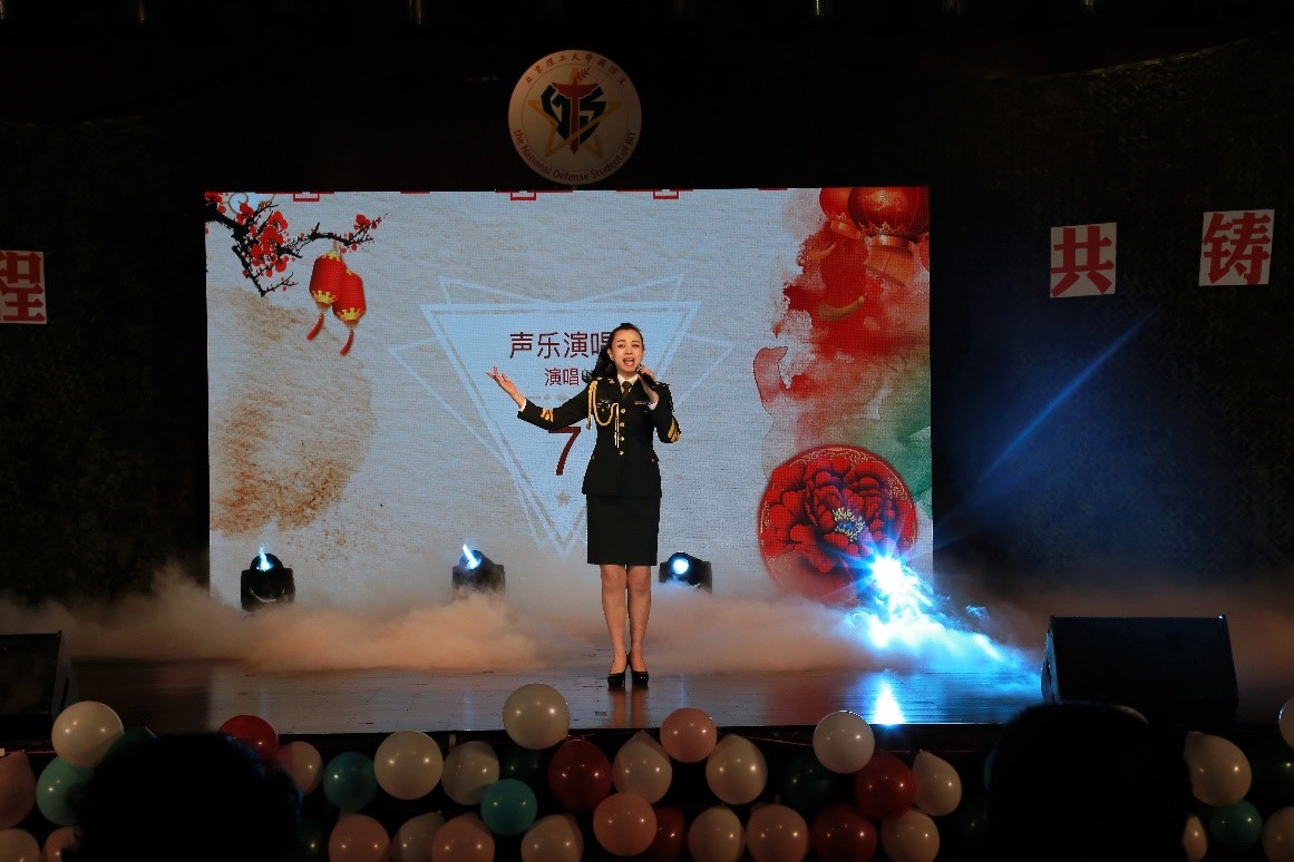 除了北理国防生自己编排的一系列精彩节目,本届晚会还邀请到了诸多嘉宾到场演出。特邀嘉宾带来的《共和国之恋》与《节日欢歌》,欢唱着节日的喜庆气氛,诉说着对祖国美好愿景的期盼。浑厚悠扬的嗓音与专业级别的舞台表现力征服了观众,赢得阵阵喝彩;清华大学国防生的一首《你知道我在等你吗》演绎着青春的感情与悸动,传递着外校国防生兄弟真挚的祝福,尽展两校国防生深厚的友谊。